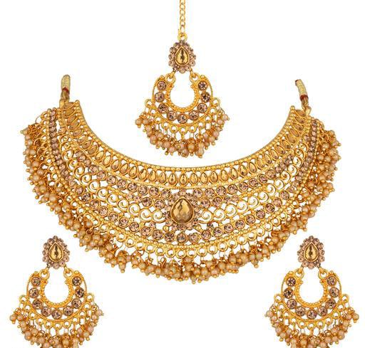 Classic Princess Chunky Jewellery Sets Princess gold plated jewellery set is perfect to team with matching costumes. The design of this chunky jewellery sets is unique and adjustable. Features 0 Base Metal: Alloy Plating: Gold Plated Stone Type: Kundan , Artificial Stones & Beads Sizing: Adjustable Type: As Per Image