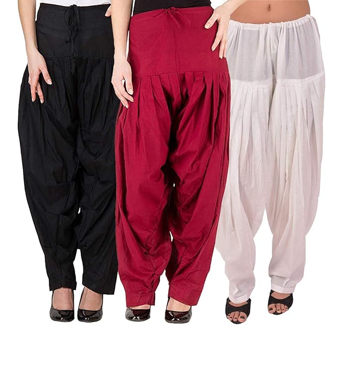 This patiala fits looser than regular bottoms, but are not baggy. Commonly, they are wider in the seat and thigh, and they feature a longer rise than regular pants have providing a comfortable fit.