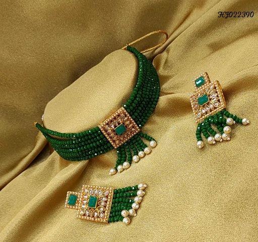 Feminine Chic Green Jewellery Sets Traditional jewellery set is perfect to team with matching costumes. The design of this american diamond jewellery sets is unique and adjustable. Features Base Metal: Brass & Copper Plating: Gold Plated Stone Type: American Diamond Sizing: Adjustable Type: As Per Image