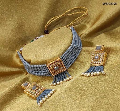 Features Base Metal: Alloy Plating: Gold Plated Stone Type: Artificial Stones & Beads Sizing: Adjustable Type: Necklace and Earrings