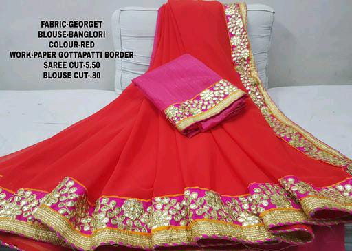 Paper Gota Patti Border Red With Pipin Georgette Sarees