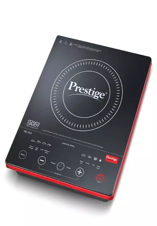 This feature is incorporated to prevent a child from accidentally turning on the induction and activating it. Boosted with a full procedure computer control, it automatically adjusts the power and temperature of the cooktop for different curries. This feature aids in direct cooking which helps with efficient cooking. This in turn prevents the wastage of energy or heat. No frequent gas refills, no mess, and no fear of accidental fire hazards, this Prestige Induction Cooktop is crafted for modern homes. It heats quickly and is designed to assess the temperature of the vessel paced on it and adjust its power level accordingly. The cooktop's unique design, with its elegant red stripe checks the right boxes in the aesthetics department, making it a welcome addition to any kitchen.The Prestige induction cook-top offers quick and consistent heating at high efficiency. Add to this its anti-magnetic wall, feather touch buttons, durability, safety and sleek design elegance make cooking a pleasing and enjoyable experience.