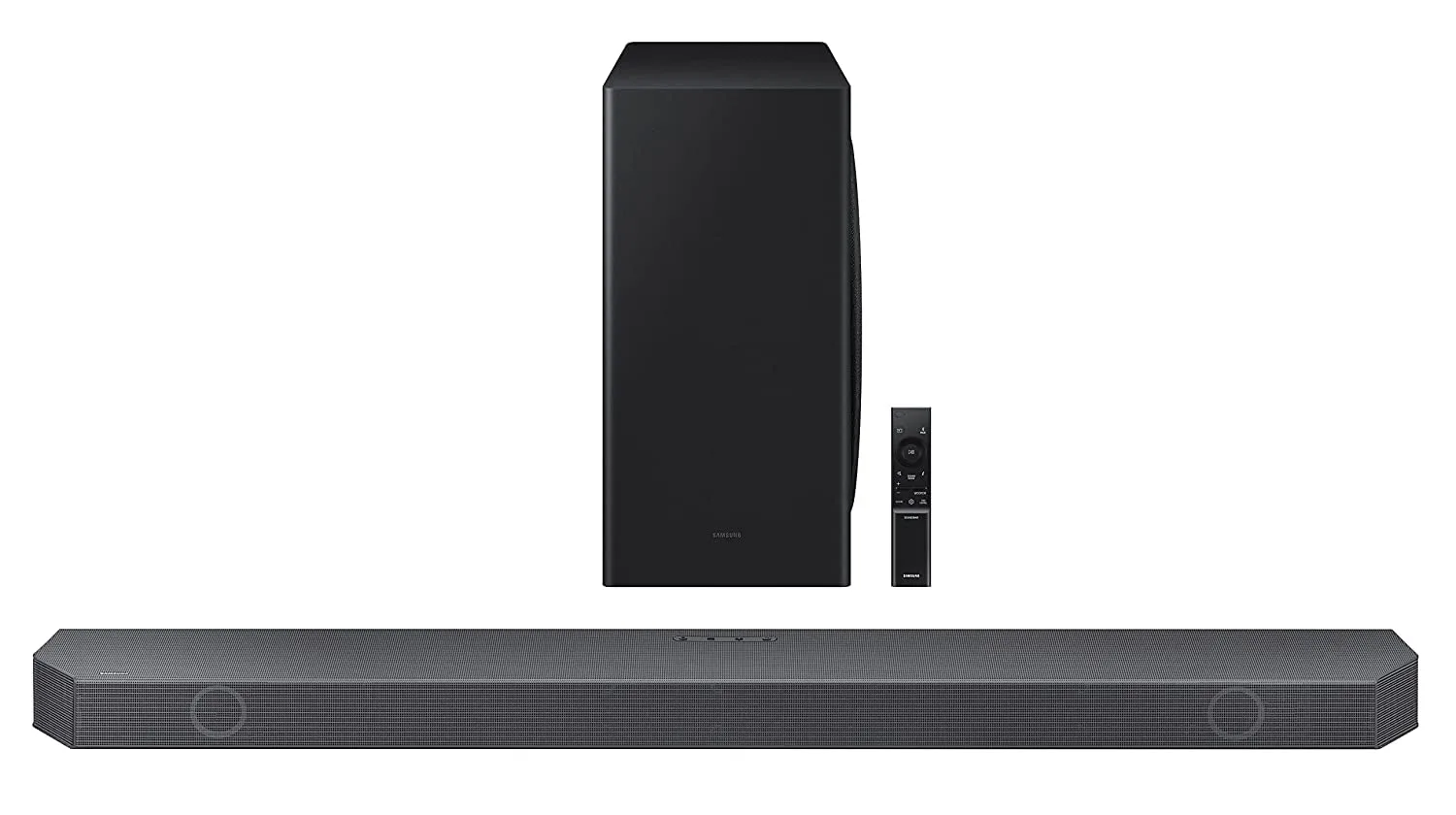 Ultimate sound immersion with up/center/side firing speakers , Q-Symphony , SmartThings App Support , Tap Sound , Spotify Connect , AirPlay2 , Alexa Built-in. Deep, rich bass boost with a wireless subwoofer, Captivating audio technology that moves the sound around you with Dolby Atmos/Dolby True HD. Dolby Atmos, Dolby Digital Plus, Dolby True HD, SpaceFit Sound, Active Voice Amplifier, Hi-Res Audio Decoding | Video Feature: 4K Video Pass, HDR 10+ | Sound Modes: Surround Sound Expansion, Game Pro, Adaptive, Standard. 1 HDMI In, 1 HDMI Out, HDMI ARC- Yes, HDMI CEC- Yes, 1 Optical In, Bluetooth, Wi-Fi, One Remote Control. 360 W, True HD 5.1.2 channel 3D Sound, 11 Speakers.